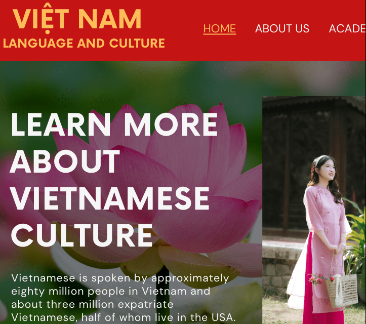 This ongoing project focuses on developing an engaging and informative website for the UH Manoa Vietnamese program. As a solo project, I am designing and developing the website to enhance accessibility for students and faculty with resources and information about the program.